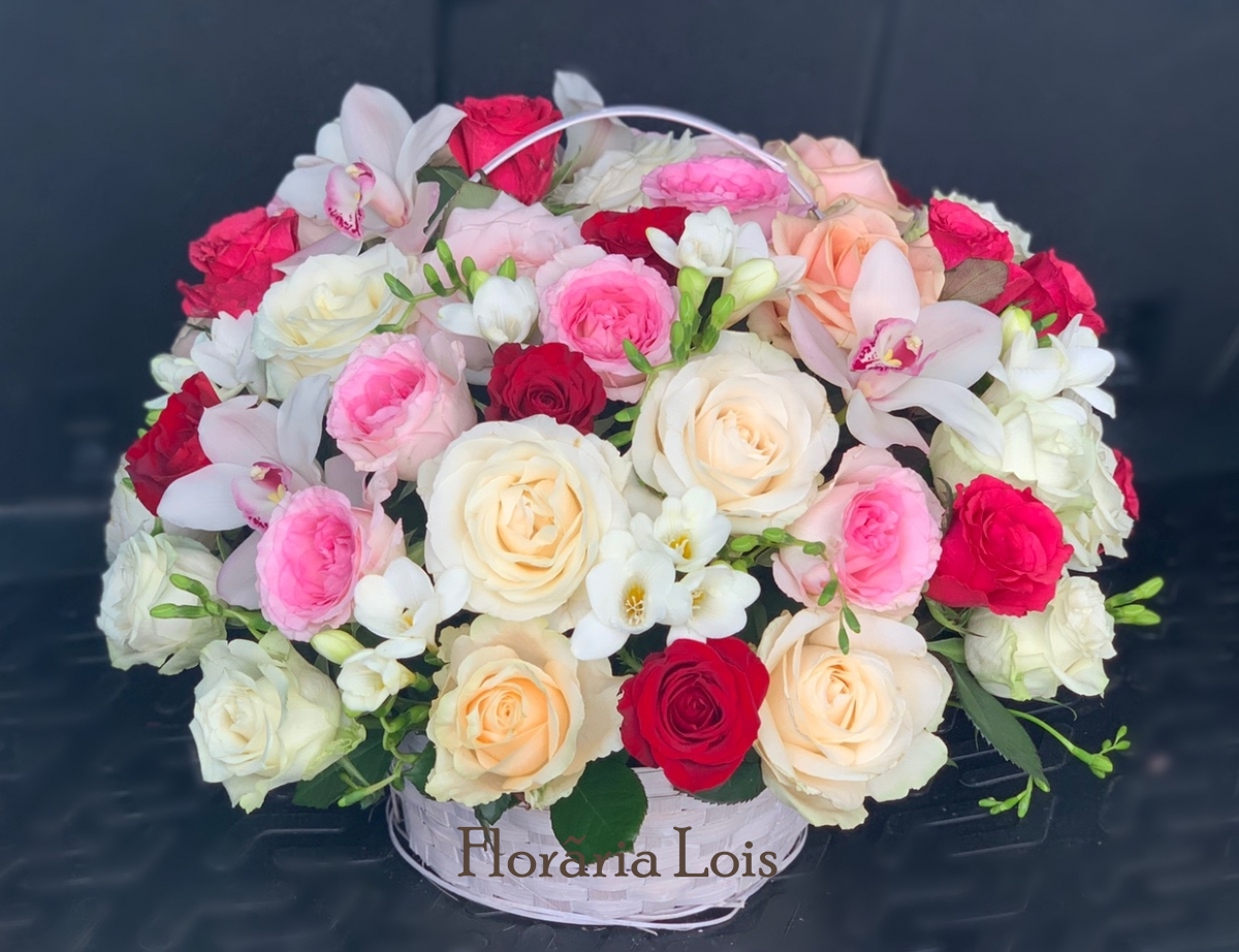 Mizăm pe flori de sezon proaspete, frumoase și vesele. Daca doriti exact florile din imagine verificati stocul inainte de a plasa comanda. Același lucru este valabil și pentru cutie sau ambalaj.