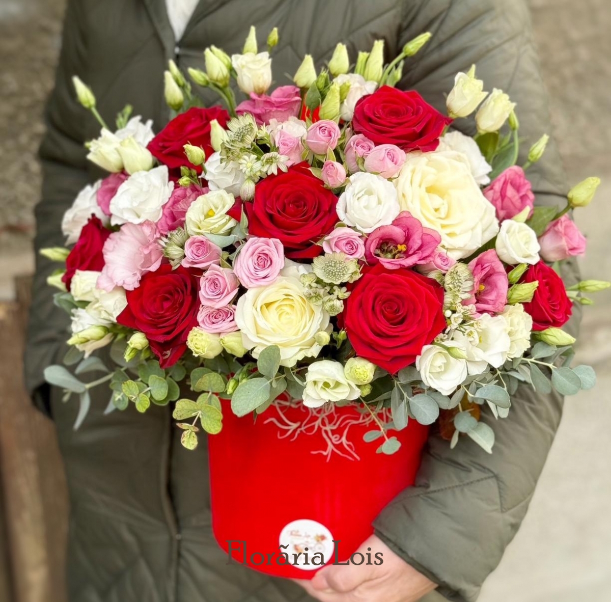 Mizăm pe flori de sezon proaspete, frumoase și vesele. Daca doriti exact florile din imagine verificati stocul inainte de a plasa comanda. Același lucru este valabil și pentru cutie sau ambalaj.