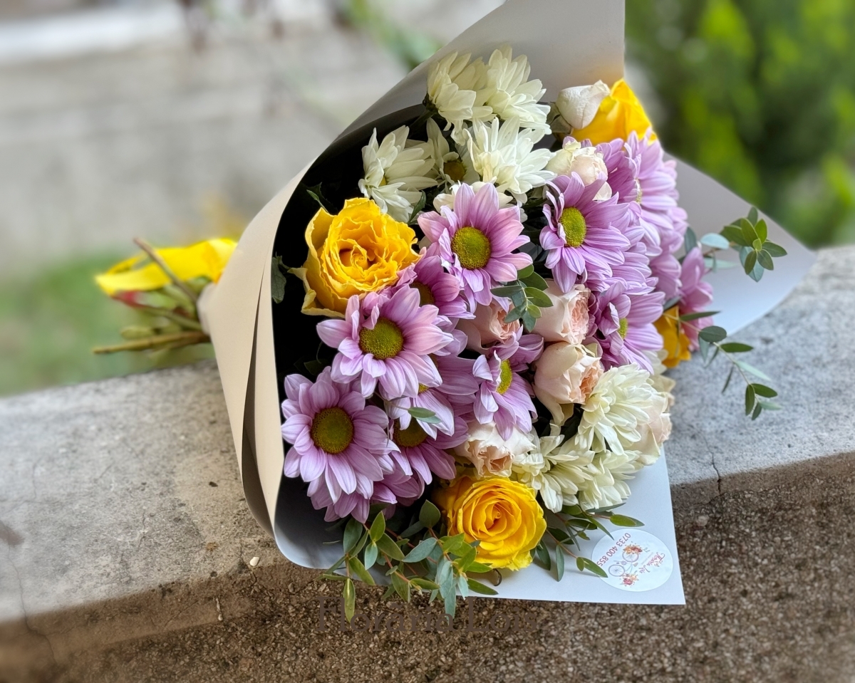 Mizăm pe flori de sezon proaspete, frumoase și vesele. Daca doriti exact florile din imagine verificati stocul inainte de a plasa comanda. Același lucru este valabil și pentru cutie sau ambalaj.